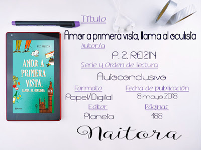 Cuando se trata de recomendaciones, siempre recurre a mi melli de cabezera, pero... si además viene acompañada por la Tertulia Romántica Sevillana, entonces la cosa va mejorando. ¿De qué hablo? Resulta que el día de hoy os traigo la lectura de nuestra última tertulia y la verdad, es que fue elegida en su momento, porque hubo algo que nos hacía necesitas de lecturas directamente optimistas y ni melli literaria se hizo cargo de la situación, proponiéndonos leer AMOR A PRIMERA VISTA, LLAMA AL OCULISTA de P. Z. Reizin.Antes de comenzar, quiero decirte que esta obra es de género Feel good. Debo decir que últimamente