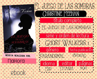 En esta ocasión os traigo el inicio de una serie paranormal de Christine Feehan, que promete y mucho. Juego de las sombras, es el título de este pequeñín. Aclaro de una vez que pronto vamos a continuar también con las hermanas Drake, pero por el momento nos quedamos con estos hombretones que os van a conquistar.Este pequeño que tengo por aquí es muy intenso. Me ha llamado la atención por el mundo parapsicológico y paranormal, hay juegos mentales, práctica de ejercicios especiales para trabajar el cerebro de una forma diferente y obtener unos resultados brutales, desarrollando la telequinesia y otros poderes que os van a dejar flipando. Lo que al inicio es un experimento militar que sale mal, dejará a un equipo de hombres atrapados y necesitados de escapar del sitio donde se encuentran. Y os aseguro que a partir de aquí la historia se vuelve trepidante, dejando una saga intensa... y hay que ver que lo es.